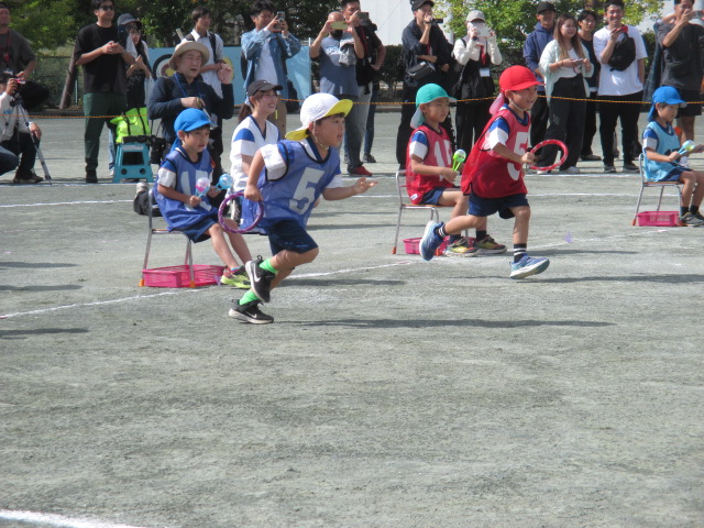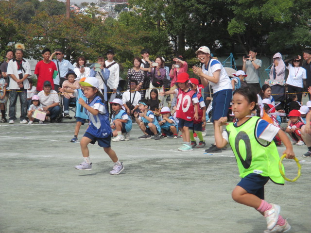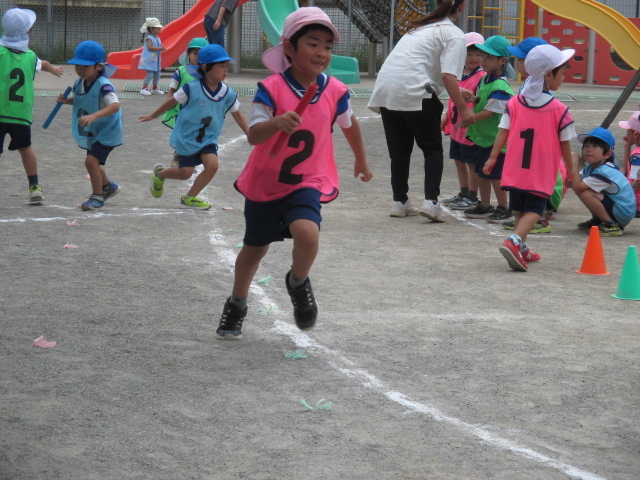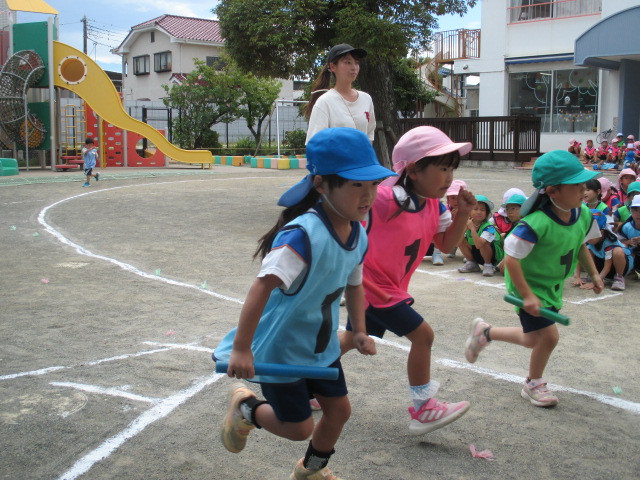 園庭で親子リレー♪
